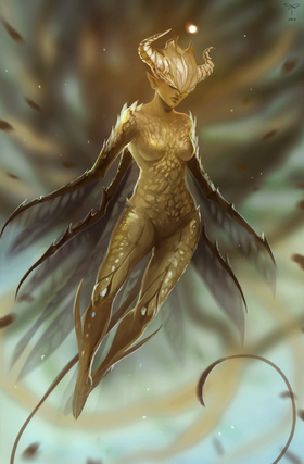 I really like the pose. The only thing that seems a little off to me is how the wing comes over the shoulder over the arm out in front, It seems a little awkward. Other than that, i think it is a really interesting concept.