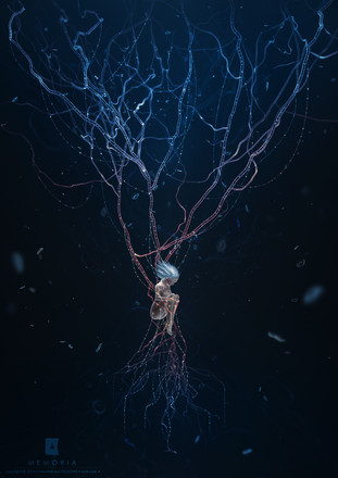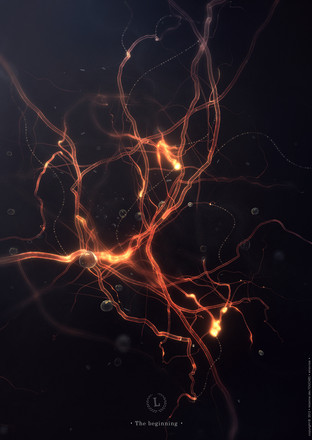 I used 3dsmax first to modeled the first root and the others with splines tool. After that I rendered it with an "x-ray" material in 3dsmax. And of course, I realized the post production in photoshop with many different layers (linear dodge, overlay, etc...) and I painted over the shapes with a basic thin brush tool.