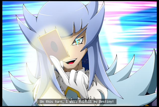 That classic dynamic background with the colors and the lines remind me a lot of the Anime duels style as well \o/ Also, I'm sorry, but I kinda forgot who she was dueling with... Was it Mai? I gotta read that fanfic! And that attack she's saying is from Alliance Magician? I'm curious :3