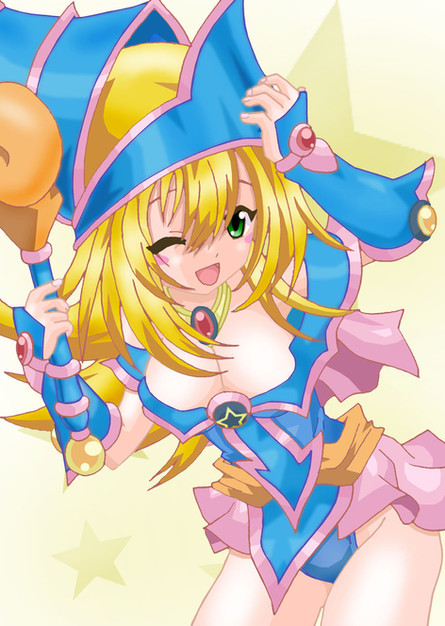 Oh, I mean more the sort of suggestive art where she's been given hugely over-sized breasts, the stuff you draw of her is fine. ^^ Yeah, she does the cute star thing a lot, brings back memories of first watching her get summoned during Battle City.