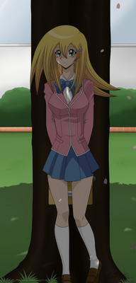 She looks so sad and confused, poor thing! I guess she must have felt really unsure about wether telling Yami how she feels or not... That's complicated XP Her face is adorable, and I liked a lot how you drew her body/pose, it looks very realistic :3 Her feet are grea too! Just one little thing, I think that her left arm position looks a bit weird... Like, the shoulder is foward, but her arm itself is turned back, I think that you should've either made her shouder be turned back, or the arm sideway Lol