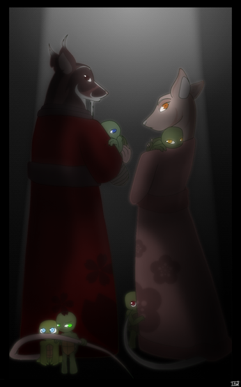 ♥ Gift for ~Moonspirit10 =3 I just wanted to draw Veta and Iza together like this XD ♥♥ You can take it that Leonardo and Donatello found Veta and Iza, holding plush dolls of them XD ♥