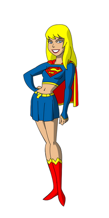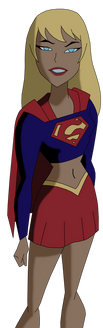 The white shirt is more suited for her counterpart Power Girl. Thank the 1984 movie and post-DCAU adaptations for their more faithful portrayal of Kara Zor-El rather than Kara In-Ze here.