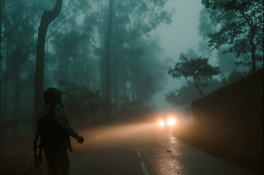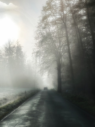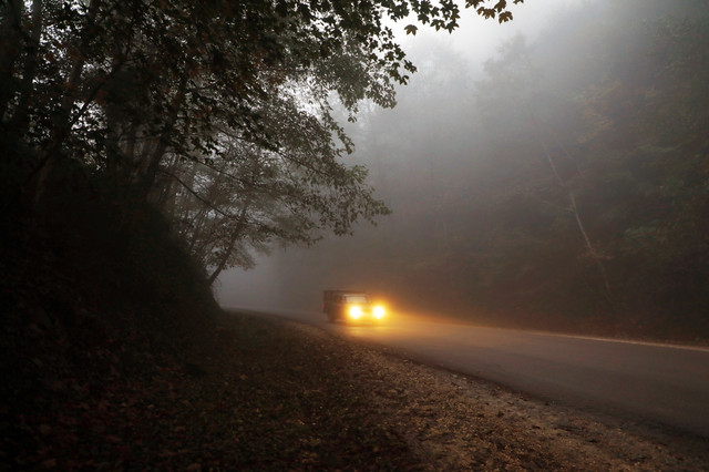 #car #fog #lights #mist #mountains #photography #winter