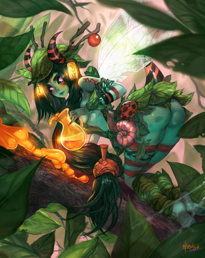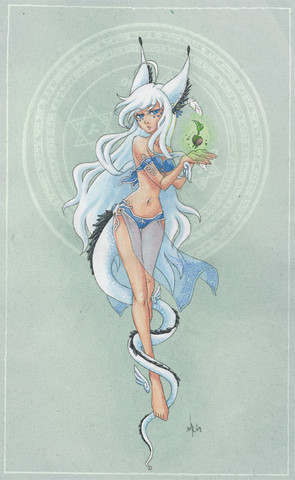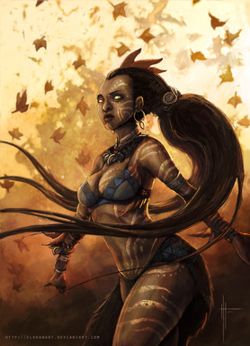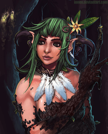 This is a nice piece of work that really captures both the heart and setting of the image, you've really shown that you have a real gift for drawing captivating work and submerging yourself in the setting and story of the character extremely well. You've got a good eye when it comes to bring motion to the human body and with the way she naturally curves and twist you get a feel of life in her appearance, but what's more is how it presents her with a natural aura as though she has lived within that forest for years and knows just about every inch of land. She feels natural and that you could easily approach her, but know that could the time arise be quick on the attack should it occur.
