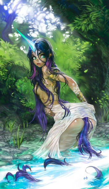 Colouring is certainly another strong aspect here since the blending of hues and contrast of the lighting on her skin, hair and within the background is something that makes the work really feel alive. Your colouring just shows how quickly the right palette can make something either come to life or appear nothing more as a flat, un-animated concept. Your method of using selected tones hasn't failed your concept at all and really pushes it to feeling vivid and an expression of emotion.