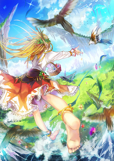 The detail in her dress (leotard?) and feet henna is amazing, and the coloring is so smooth. It reminds me of an oil painting. Where might a fairy be swinging from, I wonder? My only critique is that there is a lot of empty space that isn't well utilized. Simplicity is good; you don't want an overly cluttered background, but I think the negative space interferes with the feeling of motion. She seems to just be hovering in empty air.