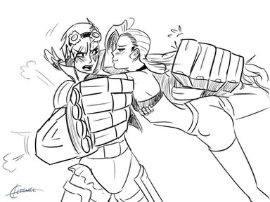 Vi from League of Legends.Drawing this made me realize that she has some, eh, not so good, fashion sense.