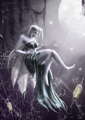Ooo, i love the spider webs, how they are coming out of her hair and fingers. She's lovely