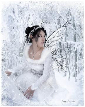 Simply breathtaking! There's so much about this picture that's exquisite - the delicate webbing, the connection between wings and hair, the way in which her fingertips join the web, and the sylph-like figure herself, with that level gaze. I love the monochrome palette, and the delicately textured background.