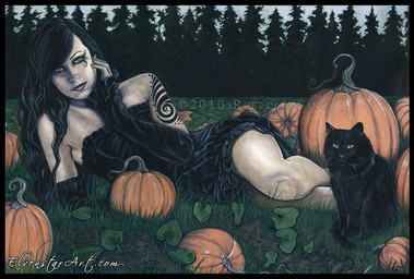 Fantastic! I do like the little details- the delicate spider webs and the position of her hands. Love it! Great use of a limited palette too.