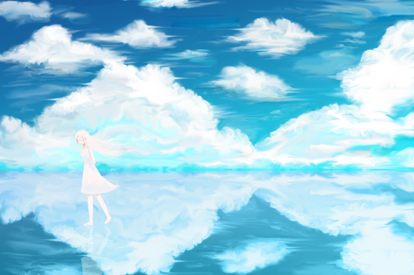 #anime #sky #digitalart #animegirl #digitalpainting #wallpaper #sea #reflection #originalcharacter #animedrawing #background #clouds