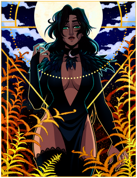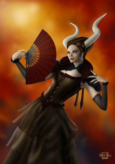 This is my colored rendition of Famine lines by deviantAshtareth . This artwork is part of a series on the four horsemen (horsewomen?) of the Apocalypse. The other pieces in this series are Pestilence , War , and Death . The entire collection can be viewed as a single artwork, which I call The Four Ladies of the Apocalypse .As with the rest of the horsemen of the Apocalypse, deviantAshtareth chose to depict Famine as a hot lady. Since he chose to draw Death as a Chinese woman, I wanted Famine to be someone other than a white person. Aside from wanting to provide some variation in ethnicity, I felt that famine isn't likely to occur in Europe or the U.S. Hence, I decided to make this lady a bleach blonde latina for no other reason than that I think latinas are muy caliente. I gave her blonde hair to contrast with the dark earth tones of the background and the dress, but one look at her eyebrows will tell you that her hair color comes from a bottle.