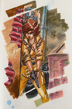 (Sold) Here's April O'Neil, the winner of February's Patreon poll! She was done with markers and some colored pencils. It took me 2 hours to do just the coloring alone, but it was worth it. I'm pretty happy with how smoothly everything blended, especially the skin. 👌