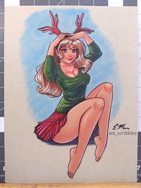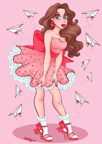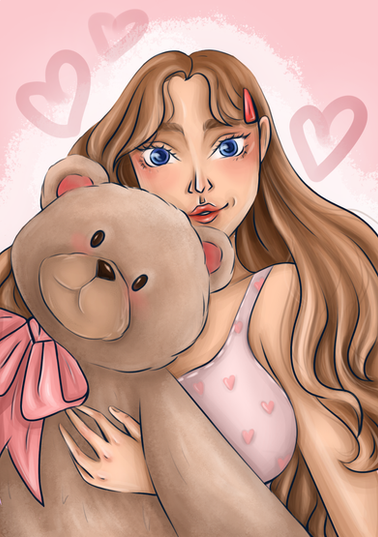 (Sold) Here's a little Valentine's Day pin-up. It was fun trying to get that plush fur look for the teddy bear! 😁She's currently available. Please send me a DM if you're interested.