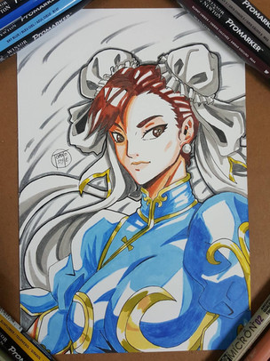 Chun-Li done with markers and colored pencils on 6 x 9 Borden & Riley paper. She's currently available. Please send me a DM if you're interested.Related content