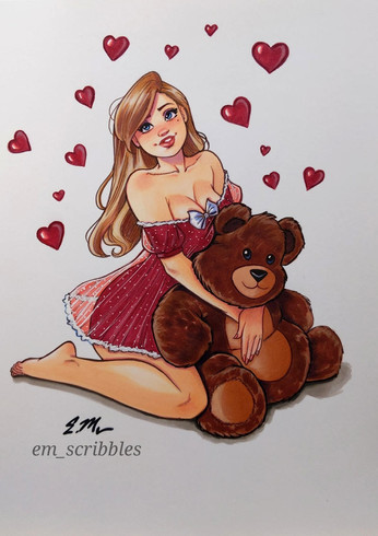 #coloredpencils #markers #pinup #redhead #traditionalart