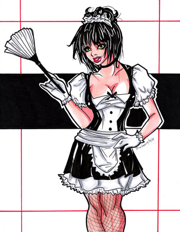 Here are the finished colors for the maid sketch I posted earlier. This was done with markers and colored pencils on 8.5 x 11 cardstock.