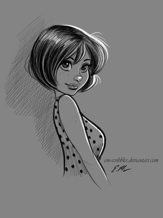 #cute #doodle #female #girl #lady #pinup #shorthair #sketch #wacom #woman #ericmatos #emscribbles #medibangpaint #digitalart #digitalpainting