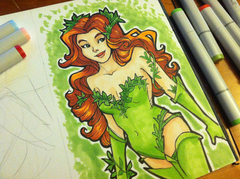 #batman #cute #dc #dccomics #freckles #gotham #ink #pamelaisley #pen #pinup #poisonivy #redhead #villain #ericmatos #inktober #emscribbles #inktober2017 #traditionalart
