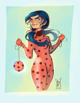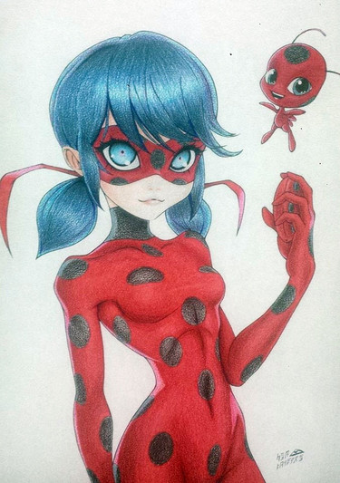Here's a commission of Ladybug that was done with grey Copics markers, and then some colored pencils were overlaid on top.Related content