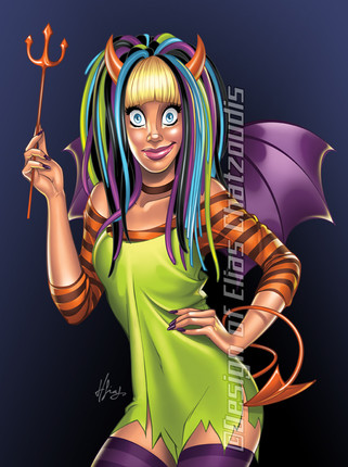 #blonde #copic #cute #devilgirl #fantasy #female #girl #lady #littledevil #markers #mischief #pinup #prismacolor #vintage #woman #ericmatos #emscribbles #coloredpencils #mischievous #traditionalart