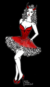 Mischievous little devil pin-up commission . This is random, but I kept thinking about those old cartoons with the little devil and angel that were always on someone's shoulder while I was drawing this. I haven't seen those in years! πIf you'd like to commission a drawing to pick up at theΒ BaltimoreComicCon , there are still a couple of days left to get on the Pre-Con list.