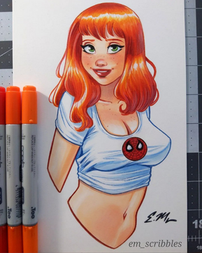 #coloredpencils #copic #cute #female #freckles #girl #girlnextdoor #lady #markers #marvelcomics #maryjane #maryjanewatson #mj #peterparker #pinup #prismacolor #redhead #spiderman #traditionalart #woman #ericmatos #emscribbles