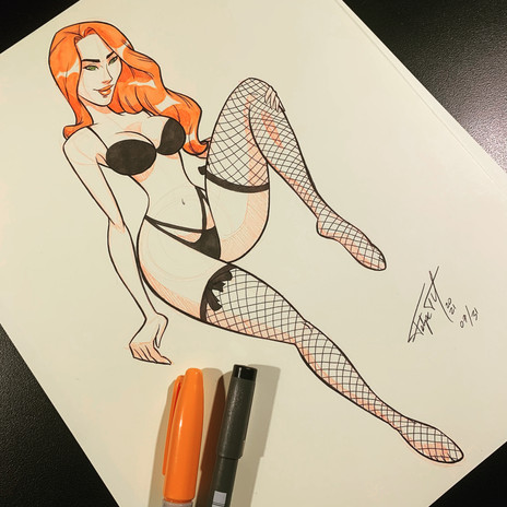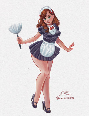 #coloredpencils #copic #cute #frenchmaid #maid #markers #pinup #prismacolor #redhead #traditionalart #ericmatos #emscribbles #em_scribbles