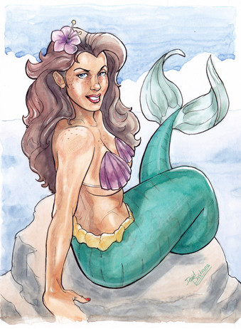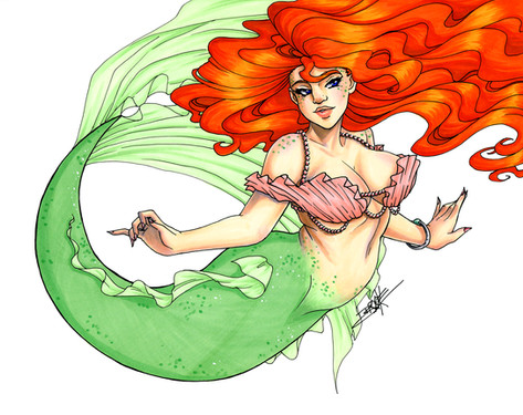 Mermaid drawing done with Copic markers. She's available on eBay .Related content