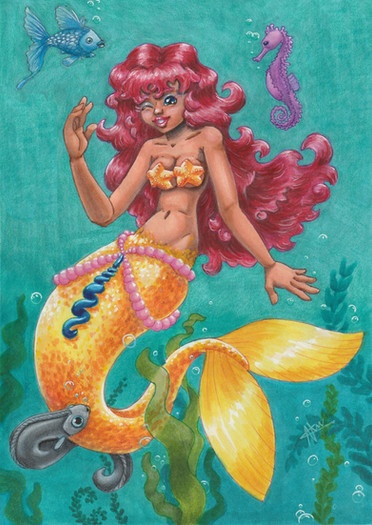 MerMay sketch done with Copics and colored pencils. I haven't posted them all here, but you can see the others on my Instagram . Sheβs available on eBay .Related content