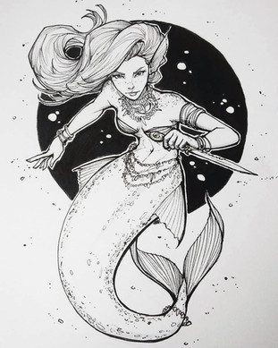 #cute #doodle #female #freckles #girl #indexcard #ink #lady #mermaid #pencil #pinup #sketch #traditionalart #woman #ericmatos #mermay #emscribbles #mermay2018