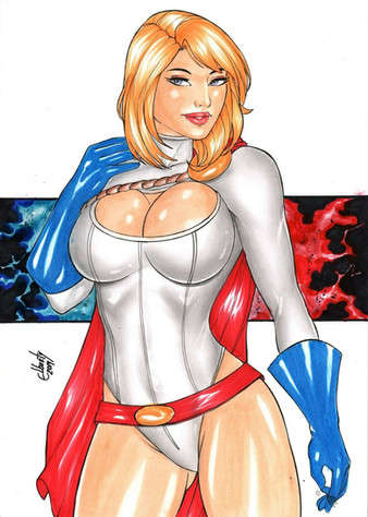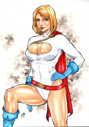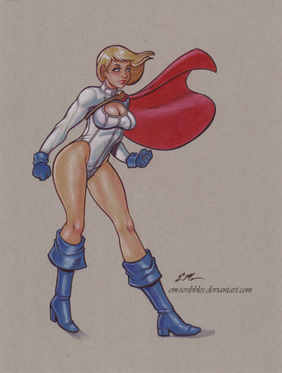 Mixed media sketch of Power Girl on toned paper. Β Sheβs available on eBay .Related content
