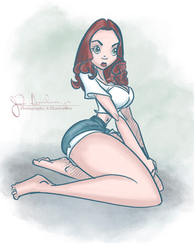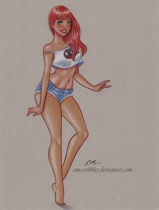 #coloredpencils #copic #cute #female #girl #markers #pinup #prismacolor #redhead #shorts #tanktop #traditionalart #woman #ericmatos #emscribbles