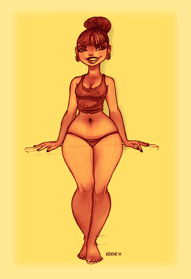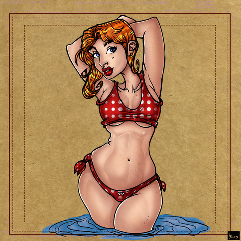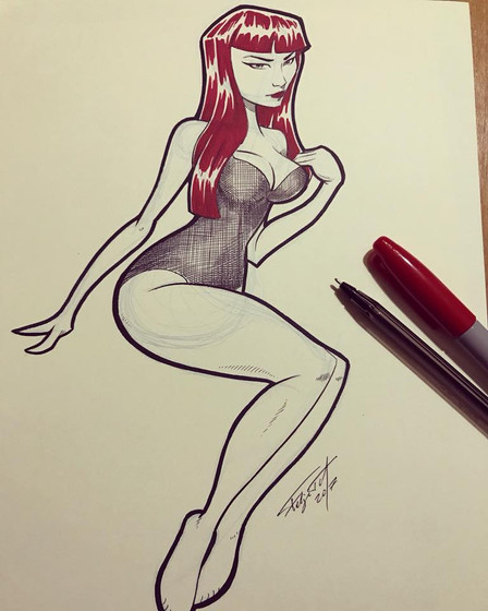 Redhead done with markers and colored pencils on 8.5 x 11 card stock.She's currently available in my shop .