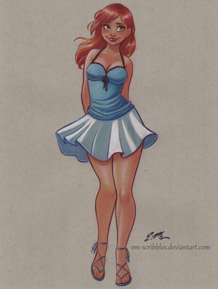 #coloredpencils #copic #cute #female #girl #lady #markers #pinup #prismacolor #redhead #summer #summerdress #traditionalart #woman #ericmatos #emscribbles