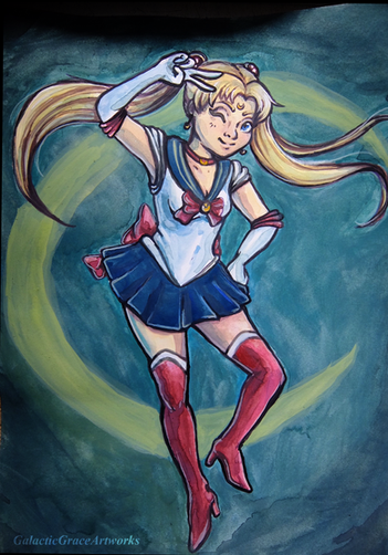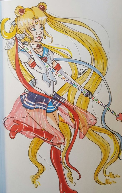 Sailor Moon done with markers and colored pencils on 9 x 12 bristol board. If you're interested in purchasing, please send me a DM or comment on this post.Related content