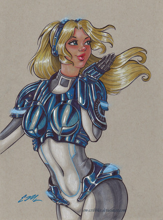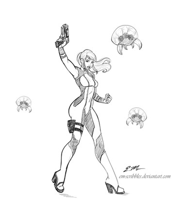 #aceo #blonde #copics #cute #female #girl #heroine #pinup #samusaran #woman #sketchcard #zerosuit #ericmatos #emscribbles #metroid #nintendo
