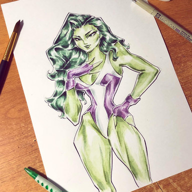 #brucebanner #coloredpencils #copic #markers #marvelcomics #pinup #prismacolor #shehulk #theincrediblehulk #traditionalart #jenniferwalters #ericmatos #emscribbles #em_scribbles