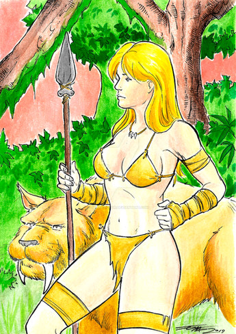 Here's a recent commission of Sheena with a cat. This marks the first time I've been commissioned to draw an animal, and while they're not my expertise, I decided to give it a try.As usual, the colors look better in person.