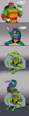 "Breaking news, red slider mutant turtle found dead in the sewers.. He was brutally smacked by what seemed like a long blunt object.. More news in 5" XD