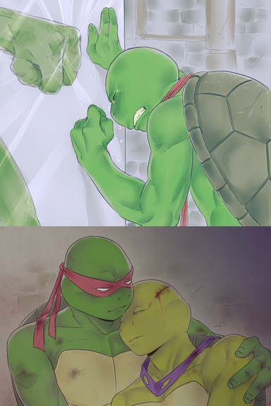 Raph just lets the feelings flow after he has almost lost his brothers in a battle.