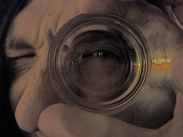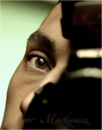 I think for another cool effect or if you really wanted to focus and capture the detail in the eye, you could take it again, but wear a black longsleeve (to blend in with the pupil). After the pick is taken, go into photoshop and take out the glares of the hotboxes. That way you get the cool effect of your hands holding the camera, the 3rd dimension of the camera as the center of the pupil, and no distraction from the glares of the hotbox. (just an idea).