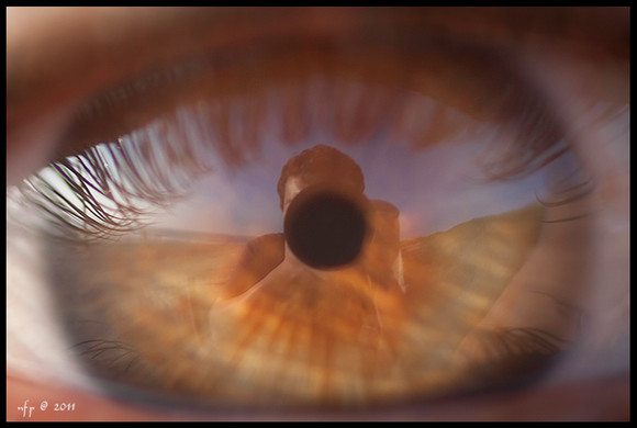 This is not a photo manipulation, it's my real reflection in my wife's eye