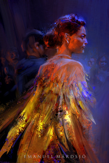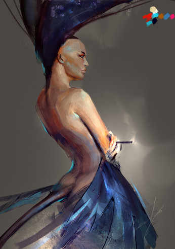 This looks sublime. The hints of blue used on the face makes it more interesting. I also like way shadows blend with the background, they create an interesting aura for the viewer.
