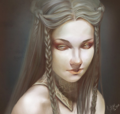 Cool, and I like how it bears a resemblance to natural media. I can't tell exactly what the shapes around her neck are supposed to be, but to me they look a little like hands making an imploring gesture.