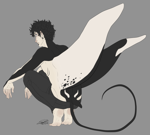 This is really amazing, the vibe one gets from this is just spine tingling! I love the form of him, and the movements on the tentacles around him. It's amazing! And the dark coloring of black and white don't get me started! It wonderful!