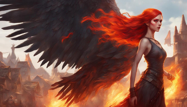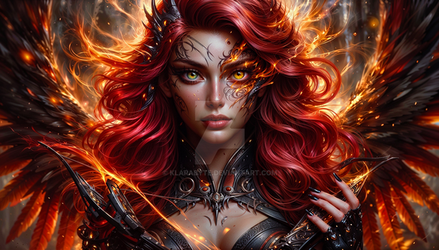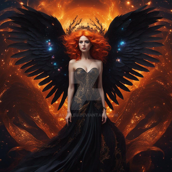 #ai #aiart #angel #angelwings #apocalyptic #darkangel #fallen #fallenangel #fantasy #fantasyart #redeyes #redhair #redhead