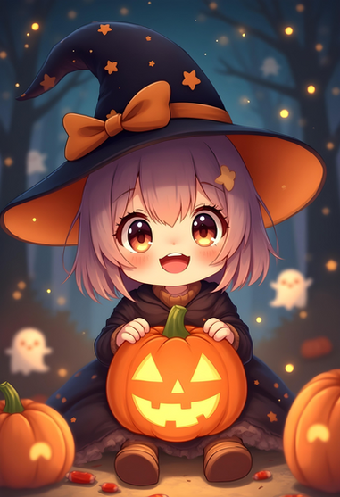 #halloween #chibi #anime #ai #cuteadorable #cuteanime #jackolantern #magic #magical #cutenessoverload #magicaljackolantern