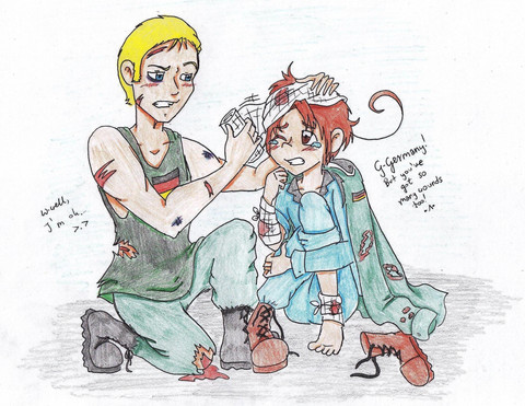 but yeah I drew the flags of the countries 'older siblings' drenched in blood - it's kind of like a 'symbolism' thing?
